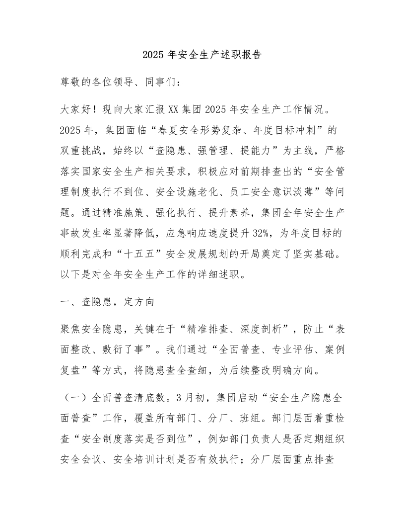 2025年安全生产述职报告