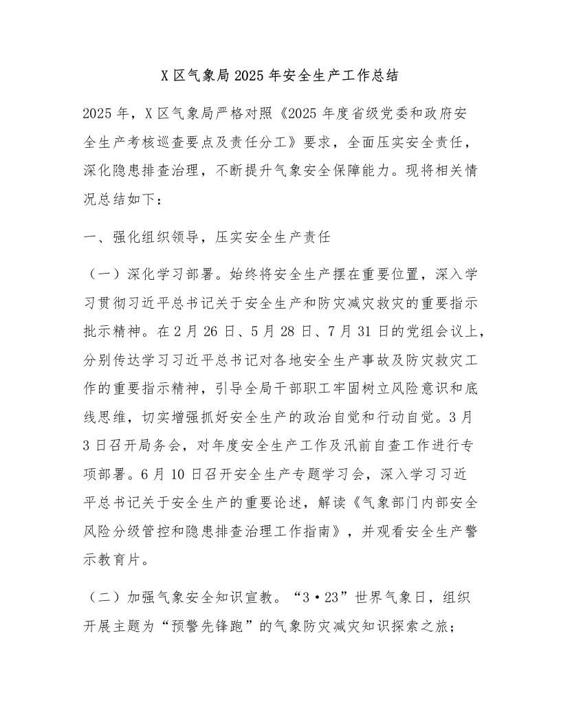 首页安全文档综合X区气象局2025年安全生产工作总结