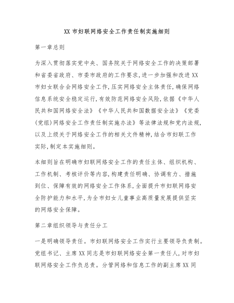 首页安全文档综合XX市妇联网络安全工作责任制实施细则