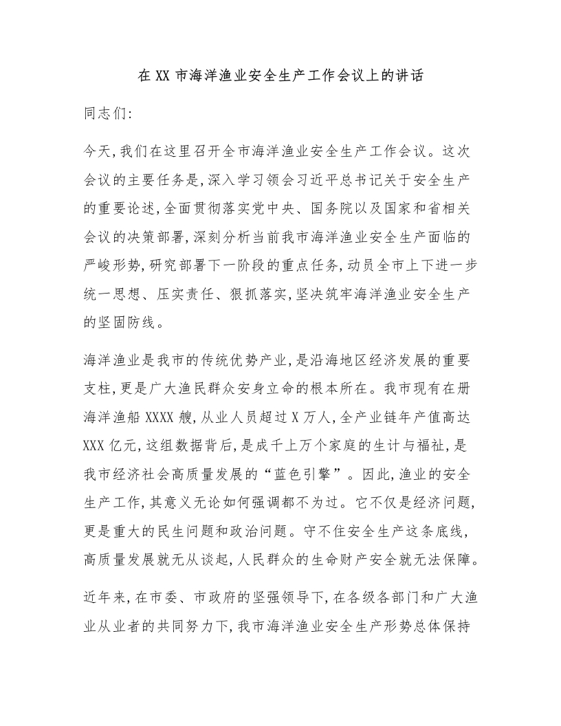 首页安全文档综合在XX市海洋渔业安全生产工作会议上的讲话