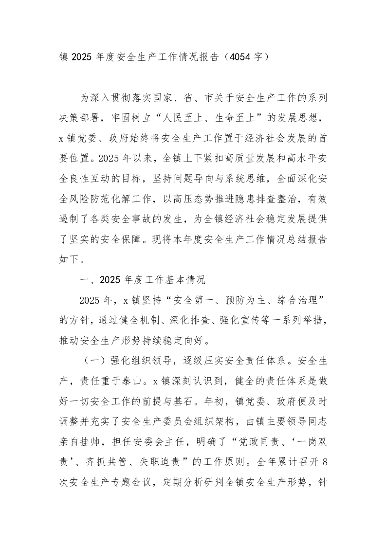 首页安全文档综合镇2025年度安全生产工作情况报告(4054字)