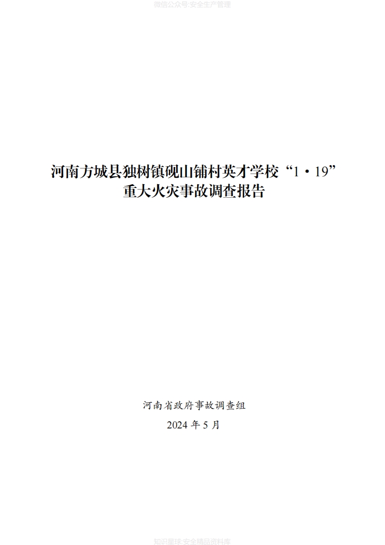 首页安全课件综合课件河南方城县独树镇砚山铺村英才学校“1·19”重大火灾事故调查报告