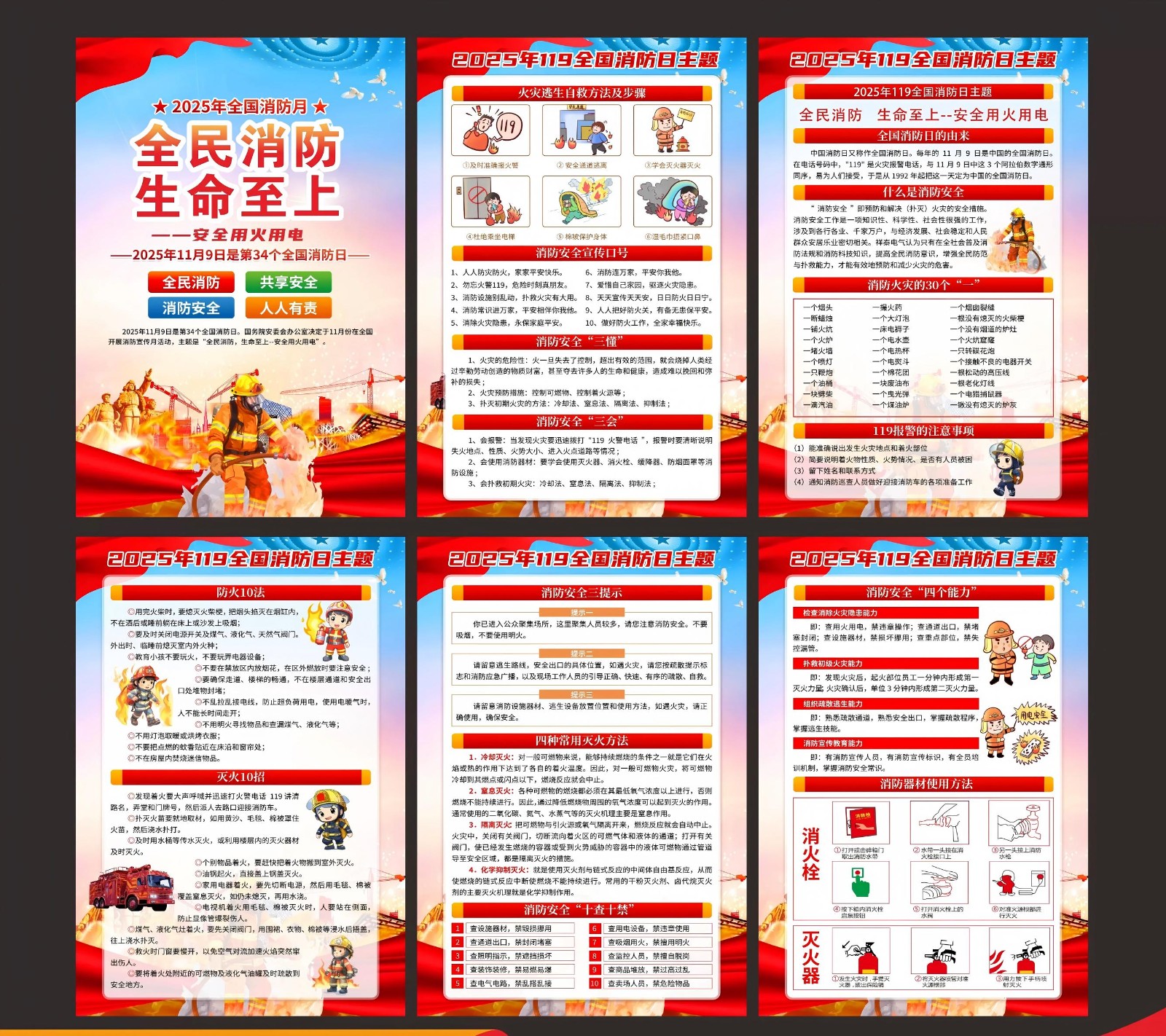 2025年消防宣传月主题海报119消防日教育海报 ,竖版海报+折页图+横板海报【高清图+PSD原版文件】