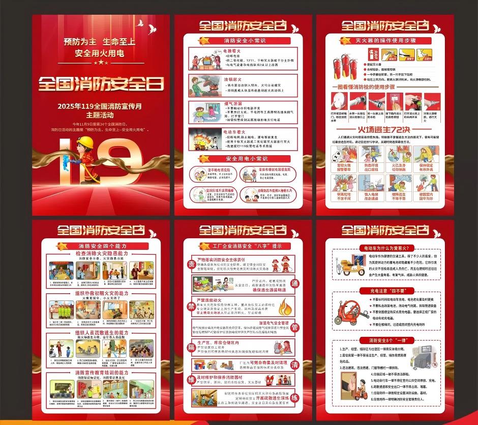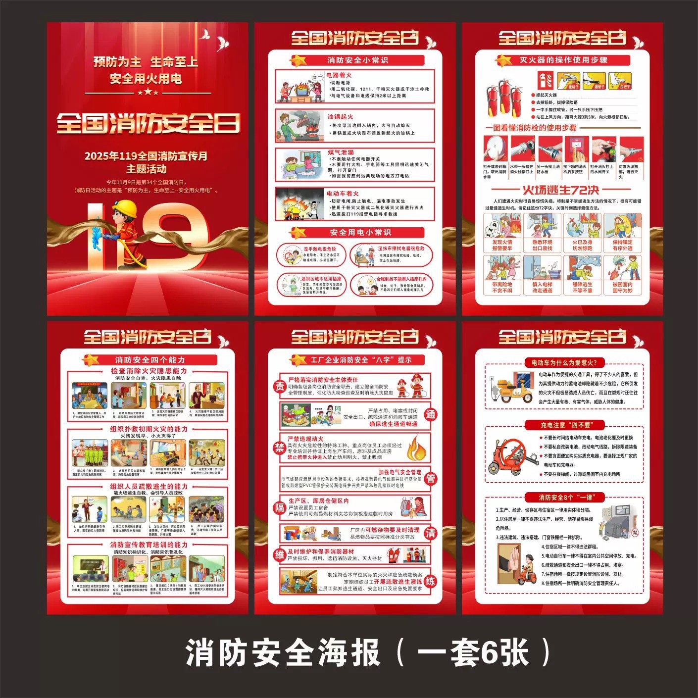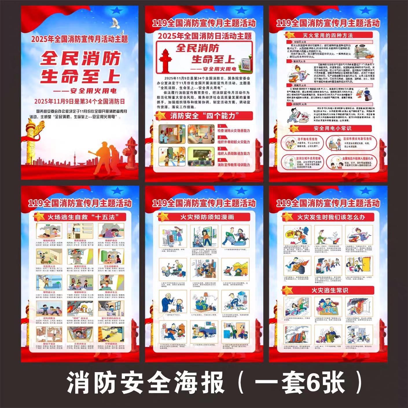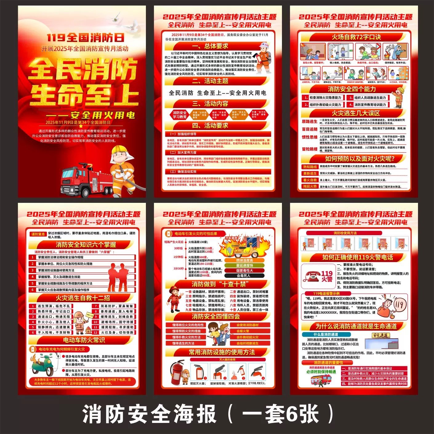 2025年消防月海报119全民消防日安全教育宣传展板活动宣传月挂图