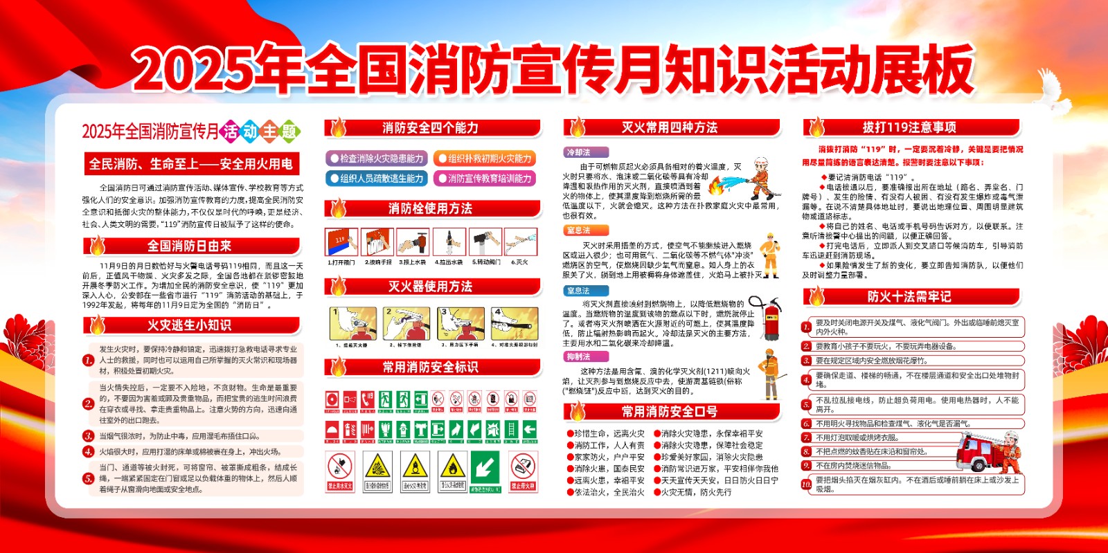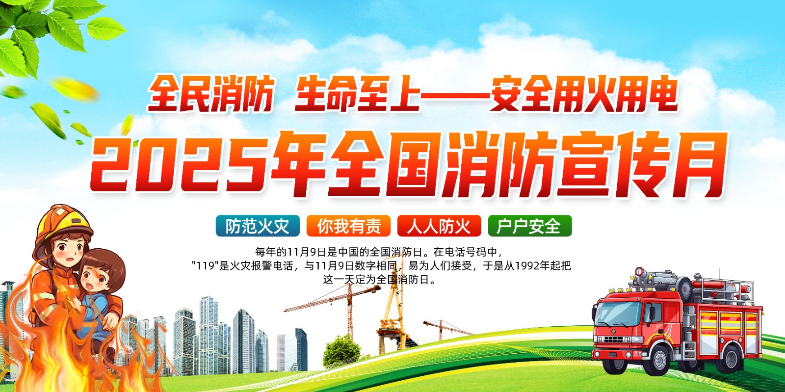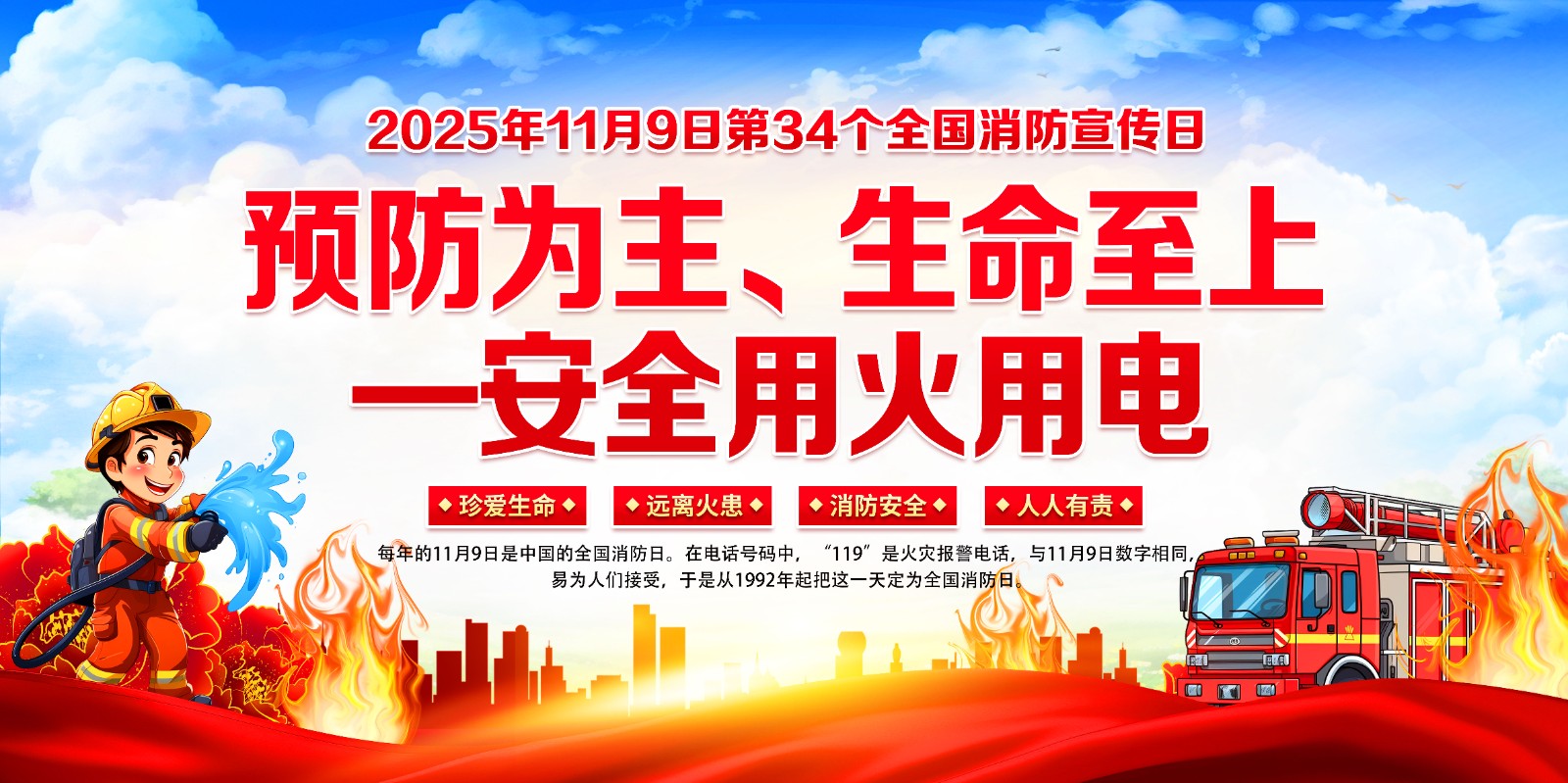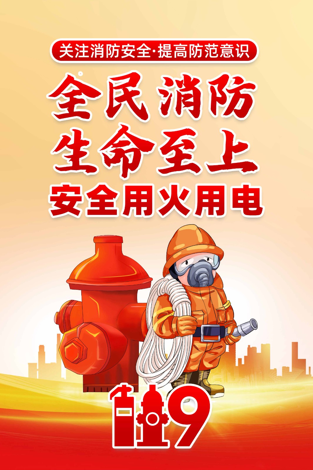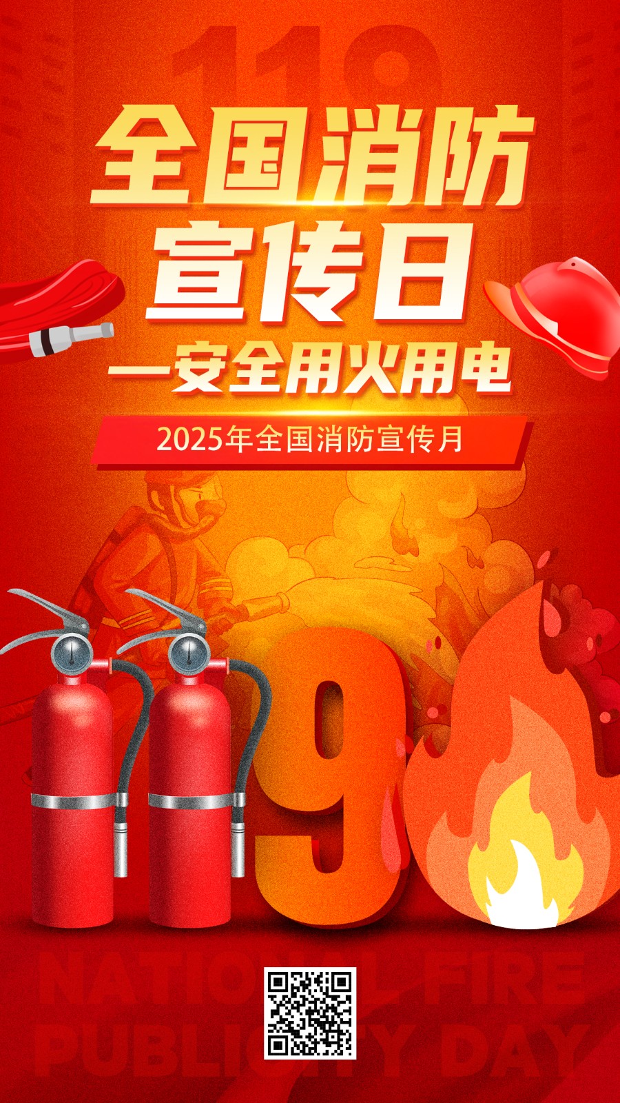 2025年消防宣传月主题海报119消防日教育海报 【高清图+PSD原版文件】